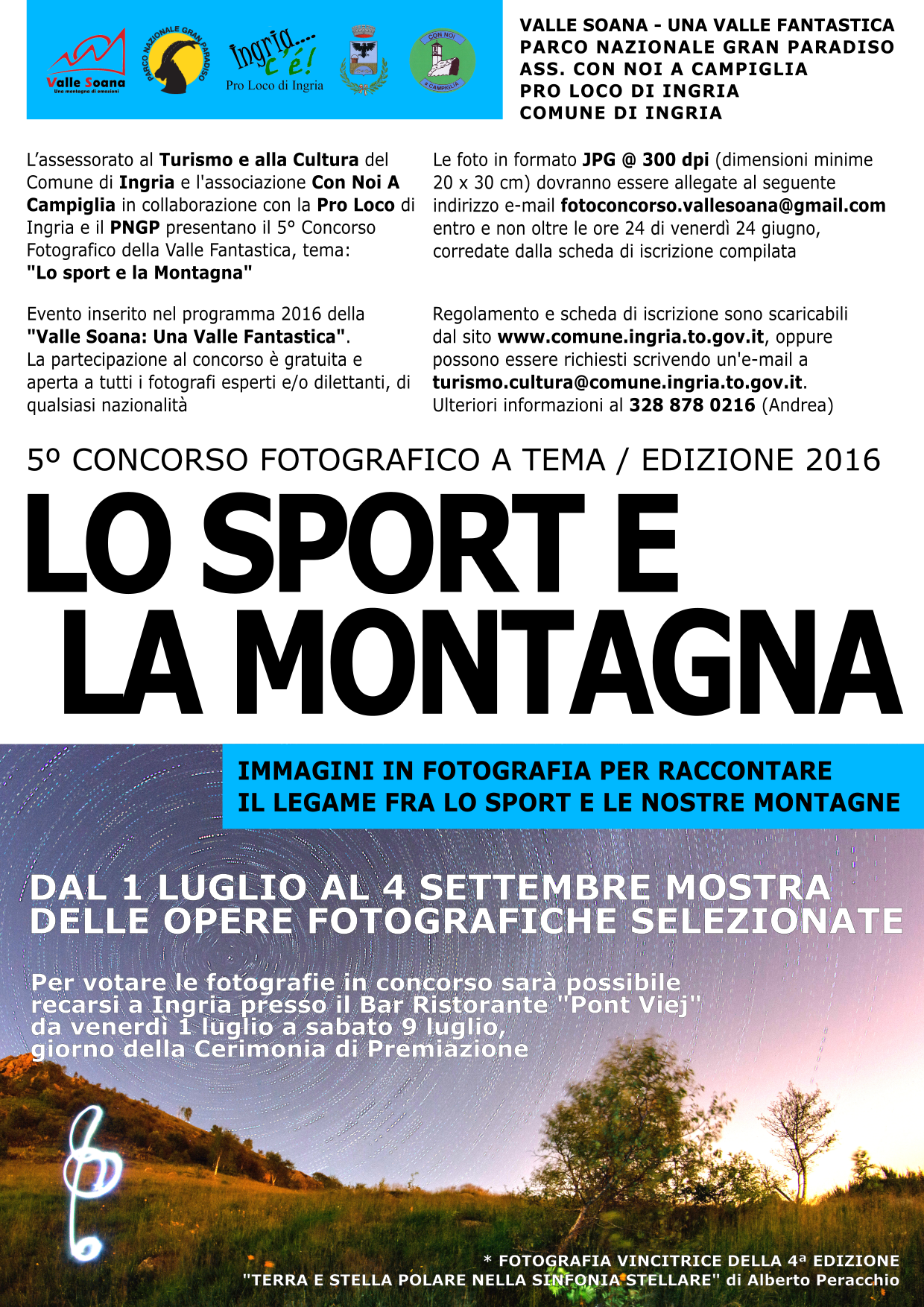 L’Assessorato alla Cultura e Turismo, l'Associazione Con Noi a Campiglia, la Pro Loco di Ingria, con la collaborazione del Parco Nazionale del Gran Paradiso presentano il 5° Concorso fotografico dal tema: