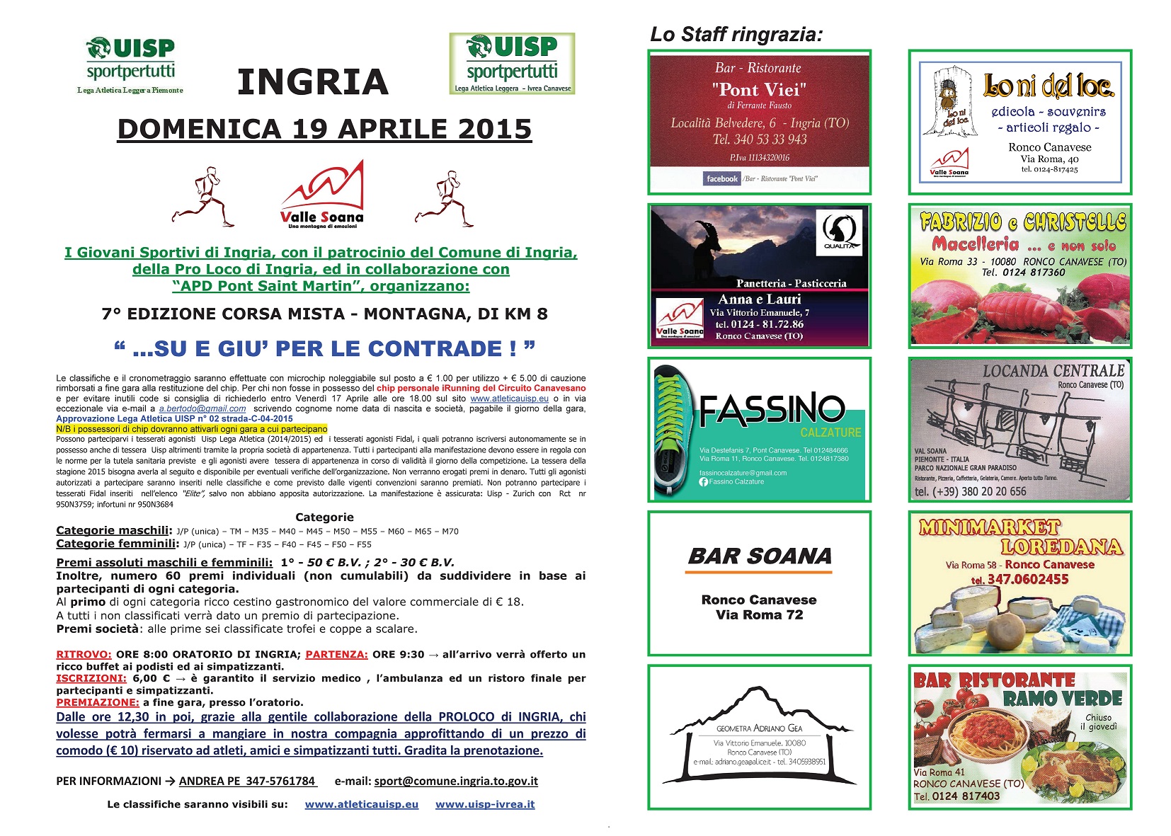 “ …SU E GIU’ PER LE CONTRADE ! ” (CAMPIONATO PODISTICO CANAVESANO UISP MONTAGNA 2015 ADULTI).