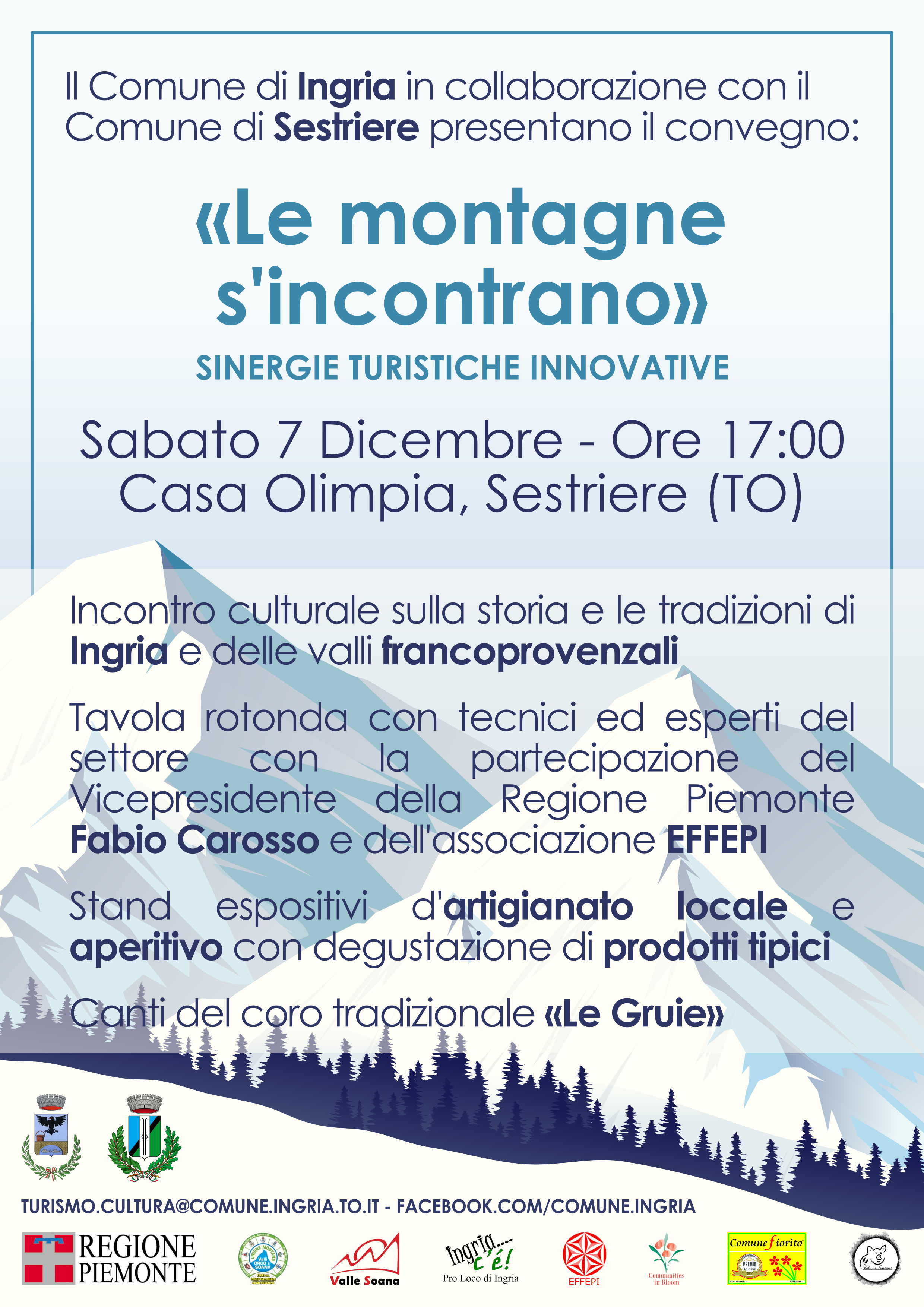 Il Comune di Ingria in collaborazione con il Comune di Sestriere presentano il convegno: «Le montagne s'incontrano» nell'ambito di sinergie turistiche innovative.