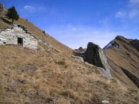 la mulattiera ben segnata con tacche rosse passa accanto alle miniere sui 1300m, si sposta a sx e salendo abbastanza ripida sbuca nei bei pascoli davanti all'alpe molinetto 1653m.